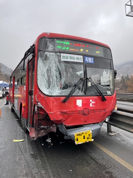 경찰은 버스가 단독으로 눈길에 미끄러진 것으로 보고 정확한 사고 경위 등을 조사하고 있다.