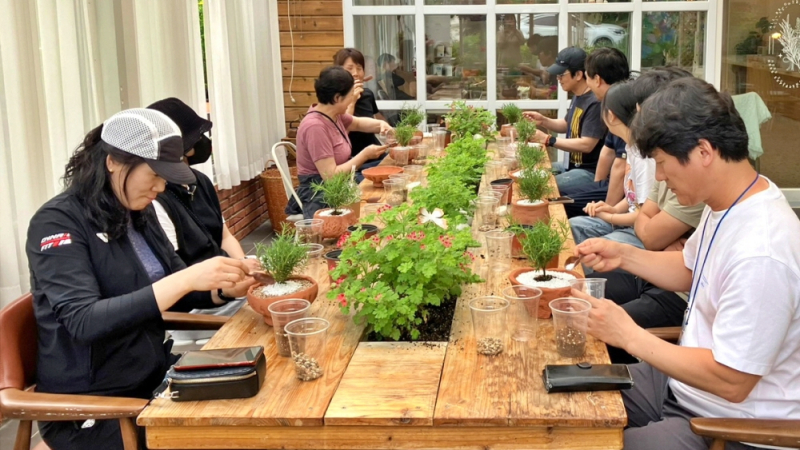 순창군 치유농업 체험농가에서 관광객들이 농촌 치유체험 프로그램에 참여하고 있다. [사진=순창군] |