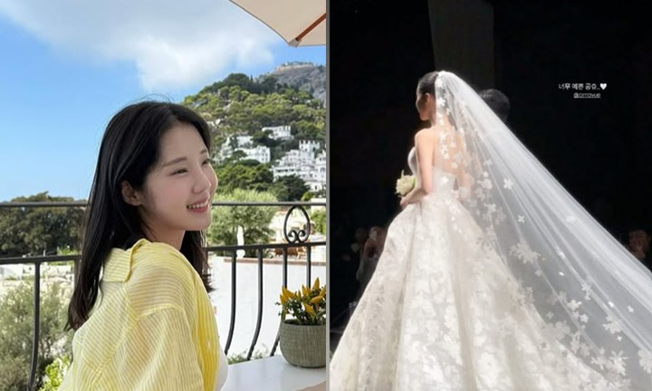 윤영경은 지난 23일 자신의 계정 스토리에 웨딩드레스를 입은 자신의 뒷태가 담긴 사진을 공개했다. 사진 속에는 그가 순백의 웨딩드레스와 면사포를 길게 늘어뜨린 채 신부 입장을 하고 있는 모습이 담겼다.