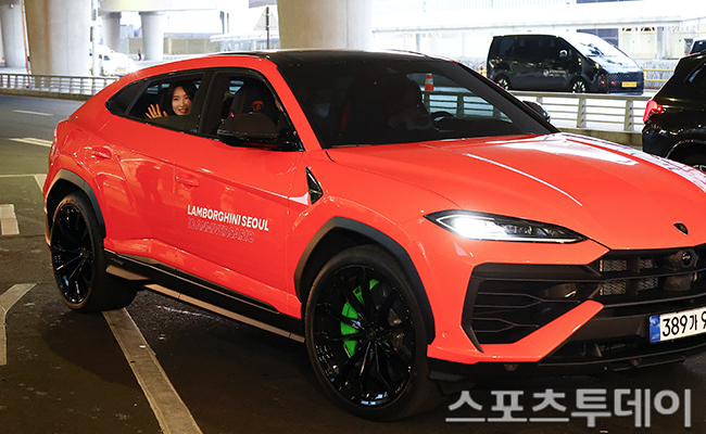 [인천공항=스포츠투데이 팽현준 기자] 쇼트트랙 김길리가 밀라노 코르티나 동계올림픽을 끝내고 24일 인천국제공항을 통해 귀국했다. 김길리의 별명 '람보르길리'의 본체인 자동차 람보르기니가 김길리를 태우고 집으로 향하고 있다. 2026.02.24.