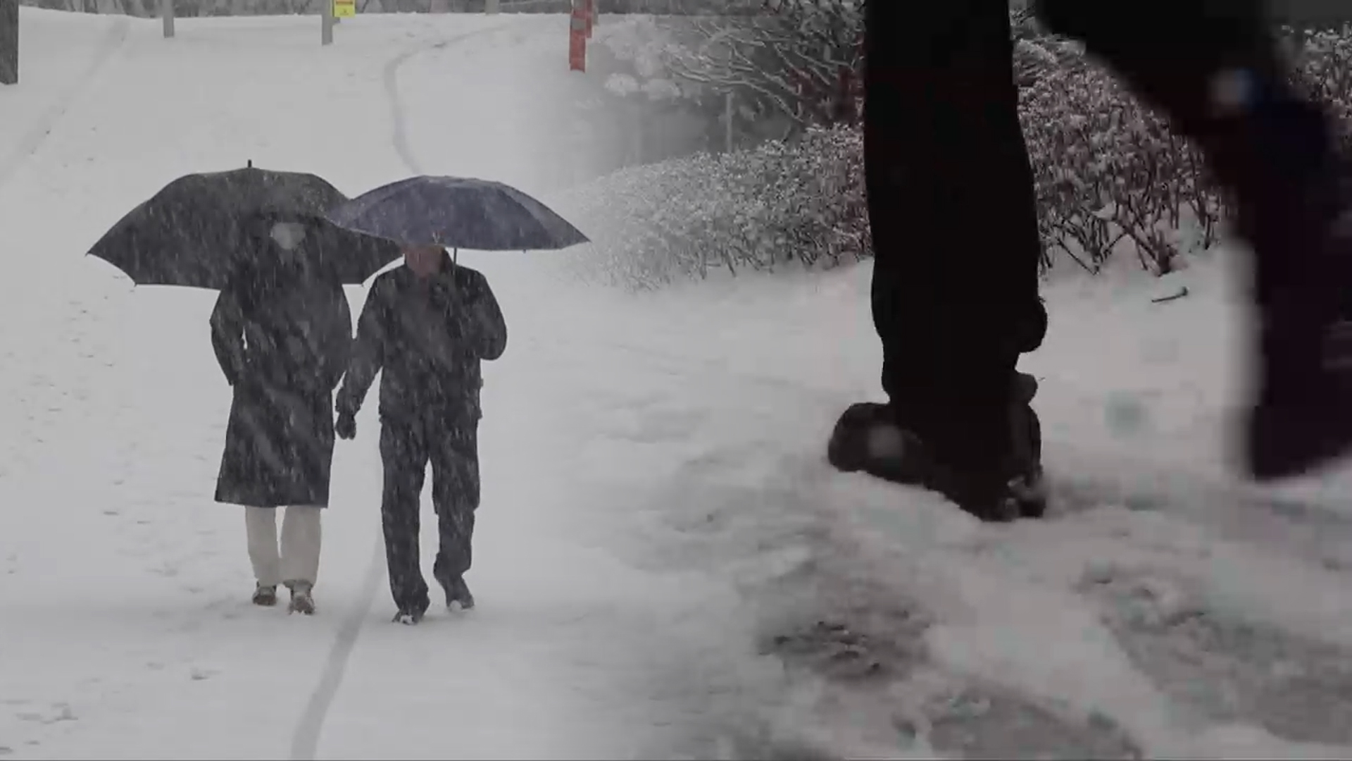 <구민철 / 기상청 예보분석관> "눈이 내리는 지역뿐만 아니라 비가 내리는 지역에도 어는 비가 나타나거나, 밤사이 기온이 떨어지면서 내린 비가 얼어 빙판길과 도로 살얼음이 나타나는 곳이 많겠으니, 교통안전과 보행자 안전에 각별히 유의하기 바랍니다."