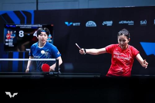 WTT 싱가포르 스매시 혼합복식에 나선 신유빈(오른쪽)과 임종훈 |