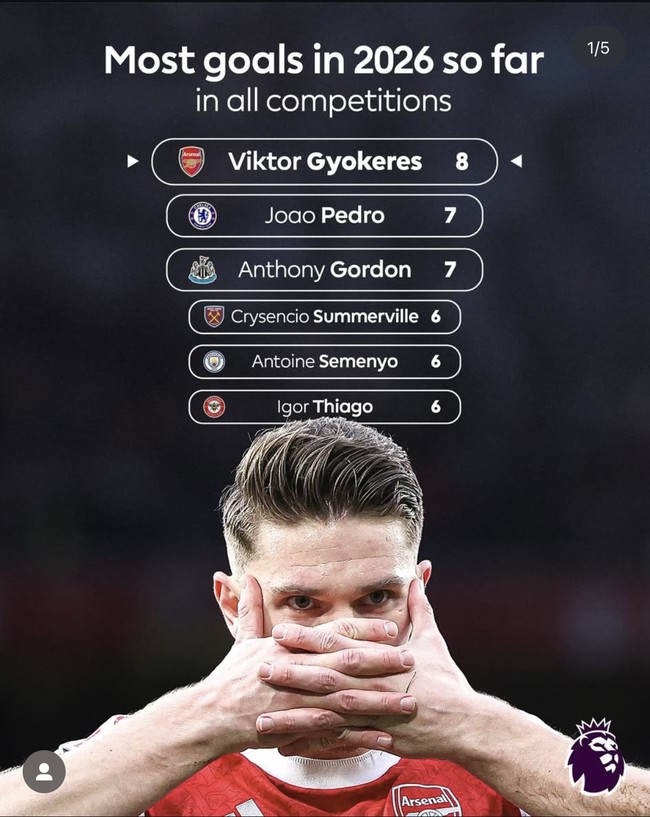 최근 요케레스의 득점력이 매우 상승했다. 올해 치른 모든 경기에서 8골을 득점했는데, 이는 프리미어리그 공격수 중 가장 많은 득점이다. 첼시의 주앙 페드루와 뉴캐슬 유나이티드의 앤서니 고든이 7골로 공동 2위를 차지했고, 웨스트햄 유나이티드의 크리센시오 서머빌, 맨시티의 앙투안 세메뇨, 브렌트포드의 이고르 치아구가 6골로 공동 3위를 차지했다.