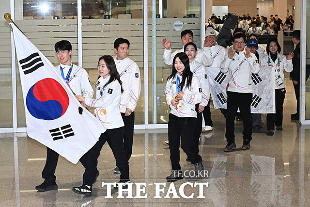 [더팩트 | 인천국제공항=김성렬 인턴기자] 2026 밀라노·코르티나담페초 동계올림픽 한국 대표팀이 24일 오후 인천국제공항으로 귀국하고 있다.
