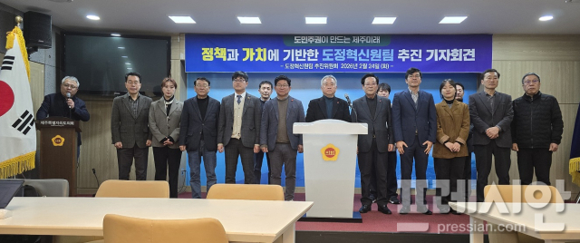 기자회견에서 도정혁신원팀 추진위는 "민선 8기 제주도정이 출범한 지 4년이 지난 지금 제주의 현실은 냉혹하기만 하다"며 "오영훈 도정은 이미 실패했다"라고 지적했다.