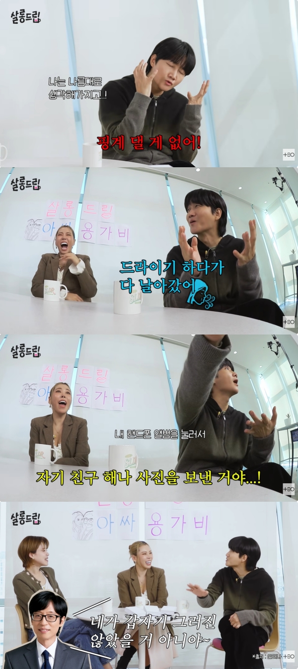 그는 "얼마 전 가족한테 통화를 했는데 아들이 내 핸드폰을 열어서 보고 있더라. 통화도 하고 있는 거다. '이미 통화했는데 왜 또 전화했어' 하니까 '전화 온 거야' 하더라. 확인해 보니 진짜 전화가 왔다. 그래서 90도로 사과했다"고 밝혔다. 가비는 "오빠가 옛날부터 되게 쿨했다"고 덧붙였다.