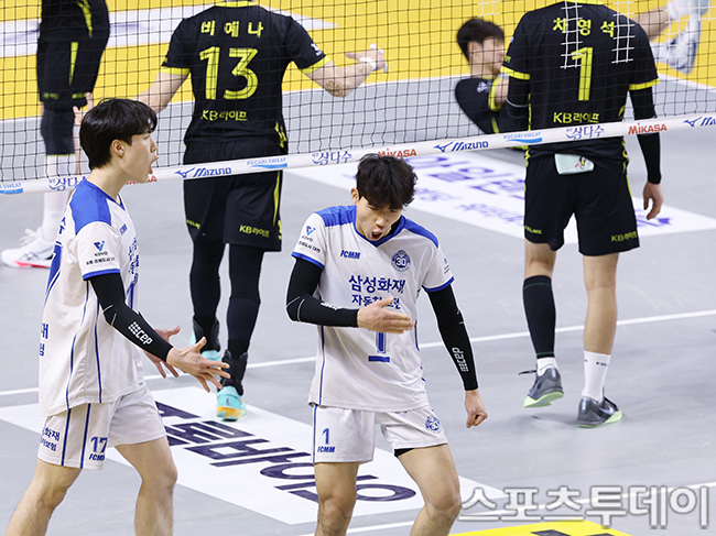 [의정부=스포츠투데이 권광일 기자] 2025-2026 진에어 V-리그 남자부 KB손해보험-삼성화재 경기가 24일 경기도 의정부시 경민대 체육관에서 열렸다.