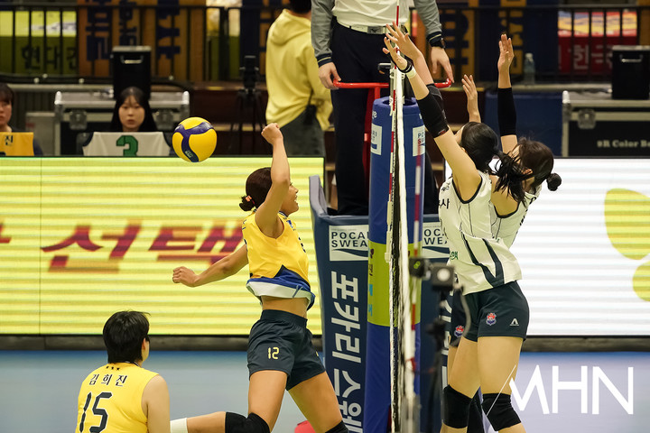 (MHN 수원, 박태성 기자) 24일 경기도 수원실내체육관에서 '진에어 2025~2026 V-리그' 여자부 6라운드 현대건설(2위 56점 19승 11패)과 한국도로공사(1위 59점 21승 9패) 경기가 열렸다.