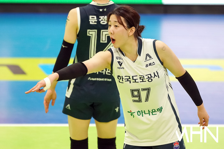 (MHN 수원, 박태성 기자) 24일 경기도 수원실내체육관에서 '진에어 2025~2026 V-리그' 여자부 6라운드 현대건설(2위 56점 19승 11패)과 한국도로공사(1위 59점 21승 9패) 경기가 열렸다.
