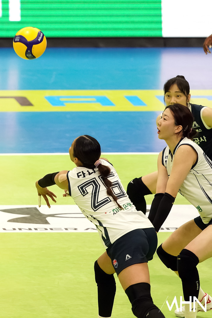 (MHN 수원, 박태성 기자) 24일 경기도 수원실내체육관에서 '진에어 2025~2026 V-리그' 여자부 6라운드 현대건설(2위 56점 19승 11패)과 한국도로공사(1위 59점 21승 9패) 경기가 열렸다.