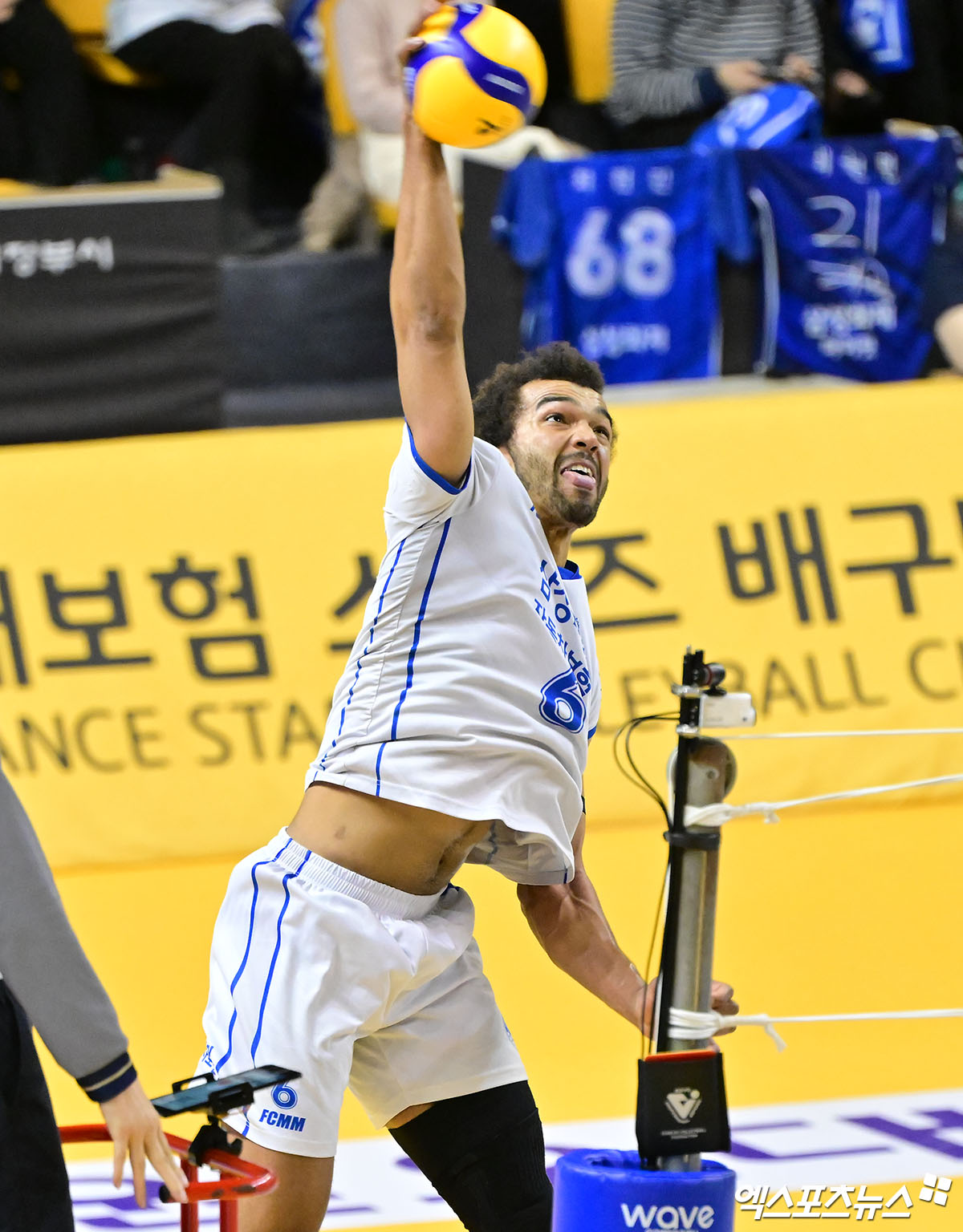 (엑스포츠뉴스 의정부, 김한준 기자) 24일 오후 경기도 의정부 경민대체육관에서 열린 '진에어 2025-2026 V-리그' KB손해보험과 삼성화재의 경기, 삼성화재 아히가 공격을 시도하고 있다.