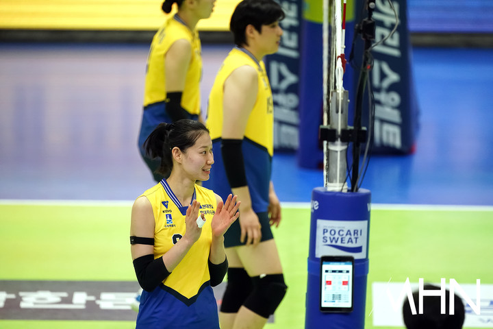 (MHN 수원, 박태성 기자) 24일 경기도 수원실내체육관에서 '진에어 2025~2026 V-리그' 여자부 6라운드 현대건설(2위 56점 19승 11패)과 한국도로공사(1위 59점 21승 9패) 경기가 열렸다.