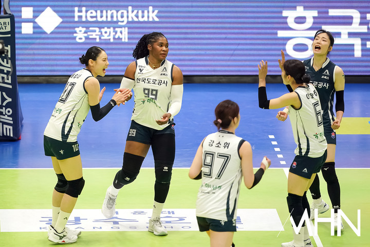 (MHN 수원, 박태성 기자) 24일 경기도 수원실내체육관에서 '진에어 2025~2026 V-리그' 여자부 6라운드 현대건설(2위 56점 19승 11패)과 한국도로공사(1위 59점 21승 9패) 경기가 열렸다.
