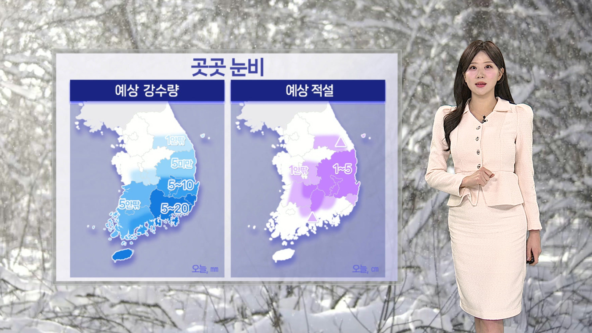 내일 아침이면 눈과 비는 모두 그치겠습니다.