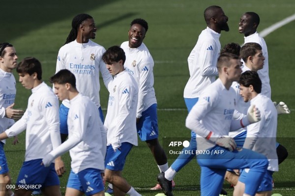 (스페인=국제뉴스) 김현승 기자 = 레알 마드리드 선수들이 24일(현지시간) SL 벤피카와의 유럽축구연맹(UEFA) 챔피언스리그 플레이오프 2차전을 하루 앞두고 스페인 마드리드의 발데베바스 스포츠 시티에서 열린 훈련에 참가했다.