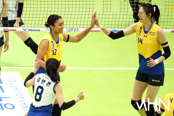 (MHN 수원, 박태성 기자) 24일 경기도 수원실내체육관에서 '진에어 2025~2026 V-리그' 여자부 6라운드 현대건설(2위 56점 19승 11패)과 한국도로공사(1위 59점 21승 9패) 경기가 열렸다.