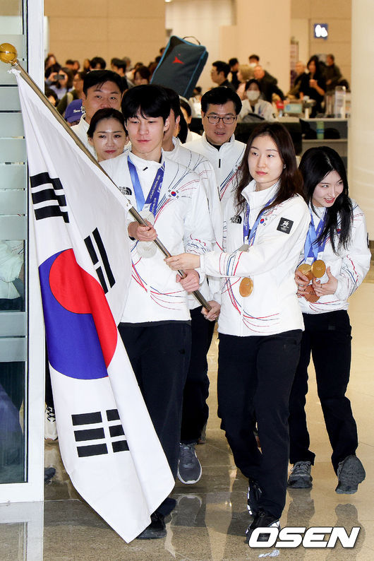 [OSEN=인천공항, 민경훈 기자] 2026 밀라노·코르티나담페초 동계올림픽에서 대한민국 동계올림픽 선수단 본진이 24일 오후 인천국제공항을 통해 귀국했다.
