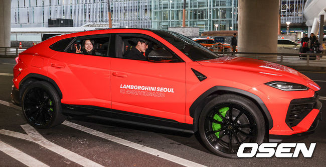 쇼트트랙 김길리가 귀국해 슈퍼카를 타고 공항을 나서고 있다. 2026.02.24 /rumi@osen.co.kr