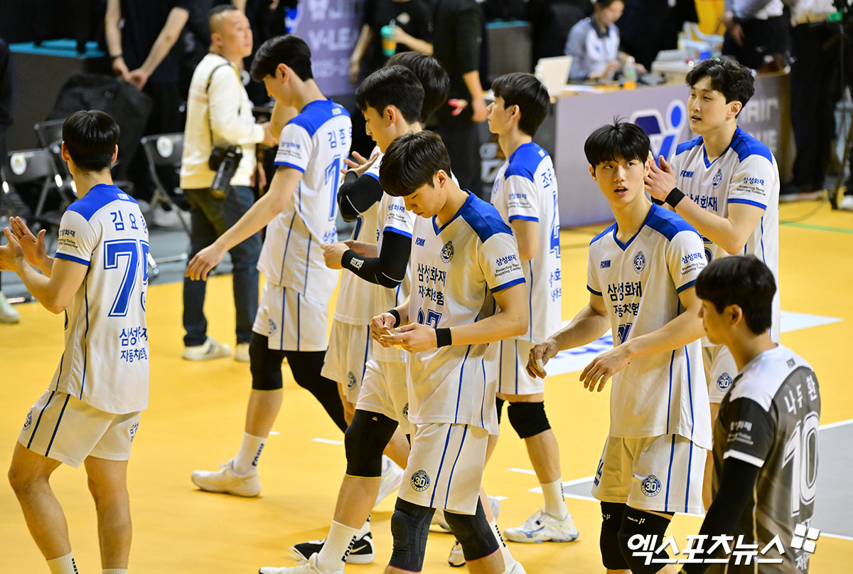 삼성화재 선수들이 아쉬워하고 있다.