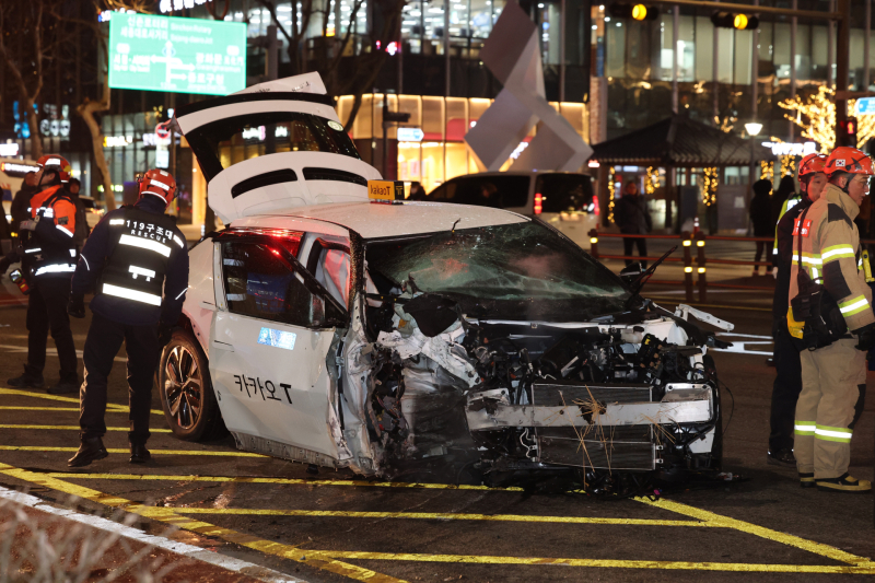 지난 2일 서울 종로구 종각역 앞 도로에서 택시 등 차 사고로 다수 부상자가 발생했다. 사진은 사고 현장 모습. 연합뉴스 |