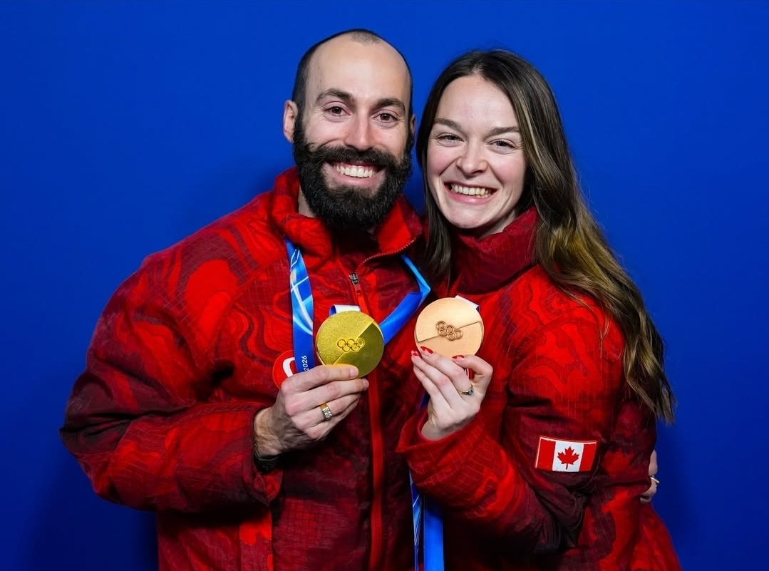 2026 밀라노·코르티나 동계올림픽에서 캐나다에 유일하게 금메달을 안겨 준 스피드레이서 스티븐 뒤부아와 한국 팬들에게도 잘 알려진 그의 여자 선수 킴 부탱이 메달을 들고 나란히 포즈를 취해 시선을 끈다.