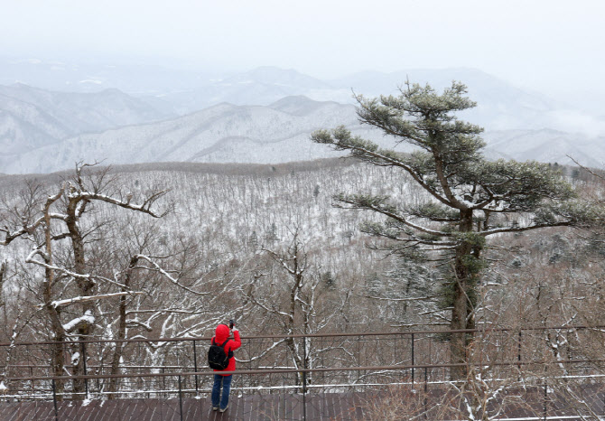 전국 곳곳에 눈 소식이 찾아온 24일 강원 평창군 발왕산 천년주목숲길에 눈이 쌓여 있다. (사진=연합뉴스) |