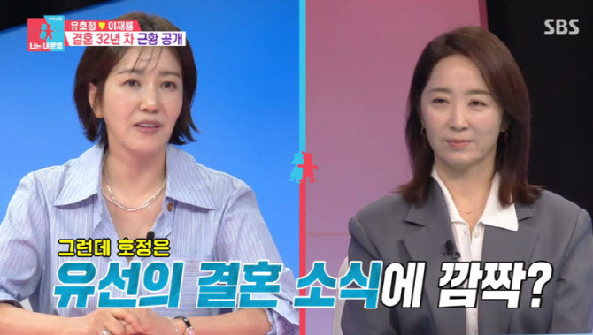 유호정은 윤유선과의 과거 결혼 소식에 깜짝 놀랐었던 일화도 전했다. 유호정은 “유선이를 그 전부터 쭉 봐왔지 않나. 유선이가 빨리 결혼했으면 좋겠다는 생각은 하고 있었는데 (현재 남편과) 만난지 3개월쯤 지났는데 결혼을 한다고 하더라”라고 이야기를 꺼냈다.