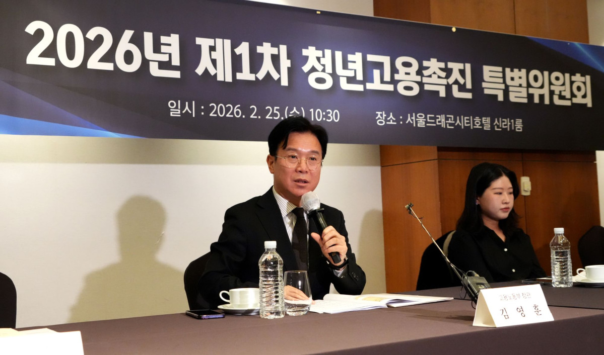김영훈 고용노동부 장관이 25일 서울 용산구 서울드레곤시티호텔에서 '2026년 제1차 청년고용촉진 특별위원회'를 주재하고 발언하고 있다. |