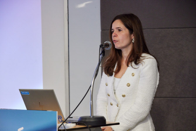시벨 톰바즈 에릭슨코리아 대표가 발표하고 있다(사진=에릭슨코리아) |