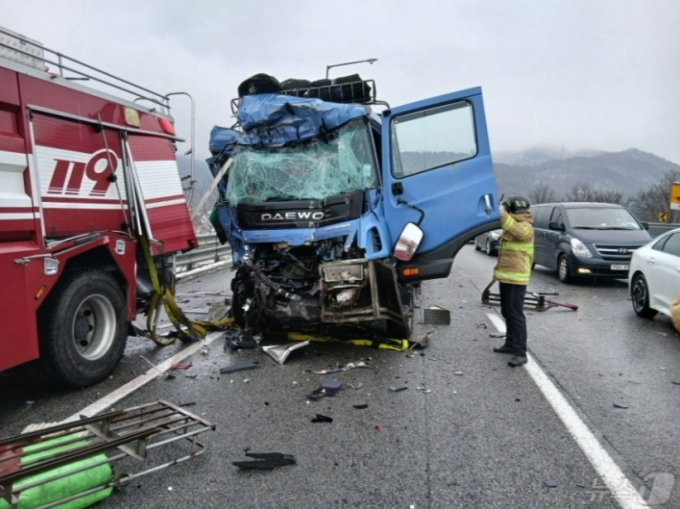 이 사고로 화물차 운전자 60대 A씨가 중상을 입고 인근 병원에 이송됐다. 앞서 발생한 1차 사고 승용차 운전자 40대 B씨도 경상을 입고 병원에 옮겨졌다.