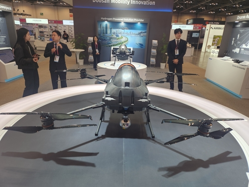 두산모빌리티이노베이션 부스에서 홍재의 수석이 전시된 수소 드론을 가리키며 이렇게 말했다.