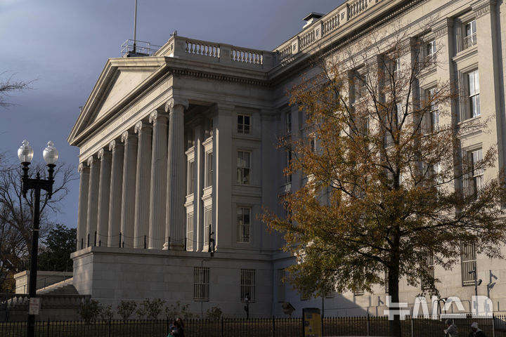 [워싱턴=AP/뉴시스] 도널드 트럼프 미국 행정부가 은행에 고객들의 시민권 정보를 수집하도록 요구하는 행정명령 또는 기타 조처를 검토 중이라고 월스트리트저널(WSJ)이 24일(현지 시간) 보도했다. 사진은 2024년 12월 7일 촬영한 미국 재무부 청사. 2026.02.25.