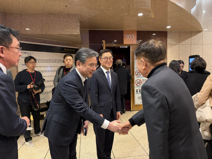 아시아투데이 남현수 기자 = 장재훈 현대차그룹 부회장이 25일 서울 예술의 전당에서 열린 '아산 정주영 서거 25주기 추모 음악회: 이어지는 울림'에 참석해 귀빈을 맞이하고 있다. 이날 추모 음악회에는 세계적인 피아니스트 김선욱, 선우예권, 조성진, 임윤찬 등이 참여했다. 예술의전당에 따르면 슈베르트 '네 손을 위한 판타지'와 라흐마니노프 '두 대의 피아노를 위한 모음곡 2번', 바그너 '탄호이저' 서곡, 리스트 '헥사메론' 등을 연주한다.