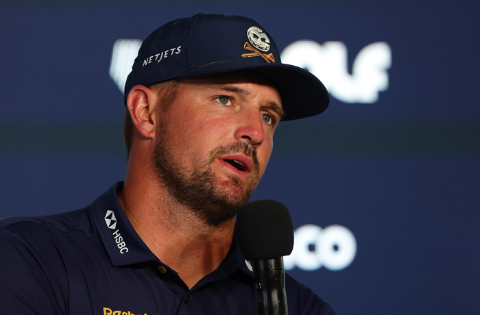 브라이슨 디섐보가 LIV 골프 아들레이드 대회 3라운드 경기가 열린 지난 14일 기자회견을 하고 있다. 게티이미지코리아 |