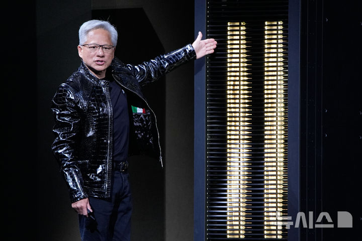 [라스베이거스=AP/뉴시스] 젠슨 황 엔비디아 최고경영자(CEO)가 지난달 미 네바다주 라스베이거스 퐁텐블로 호텔에서 세계 최대 IT·전자 전시회 'CES 2026' 개막을 앞두고 열린 엔비디아 라이브에서 루빈 AI 슈퍼컴퓨팅 플랫폼에 대해 발언하고 있다. 25일(현지 시간) 뉴욕증시는 인공지능(AI) 대장주 엔비디아의 실적 발표를 앞두고 일제히 상승 마감했다. 2026.02.26. |
