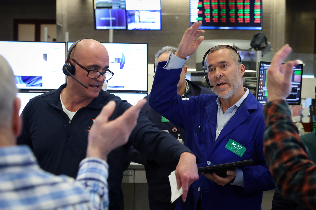 25일(현지시간) 미국 뉴욕의 뉴욕 증권 거래소(NYSE)에서 선물 옵션 트레이더들이 일하고 있다. 로이터·연합뉴스