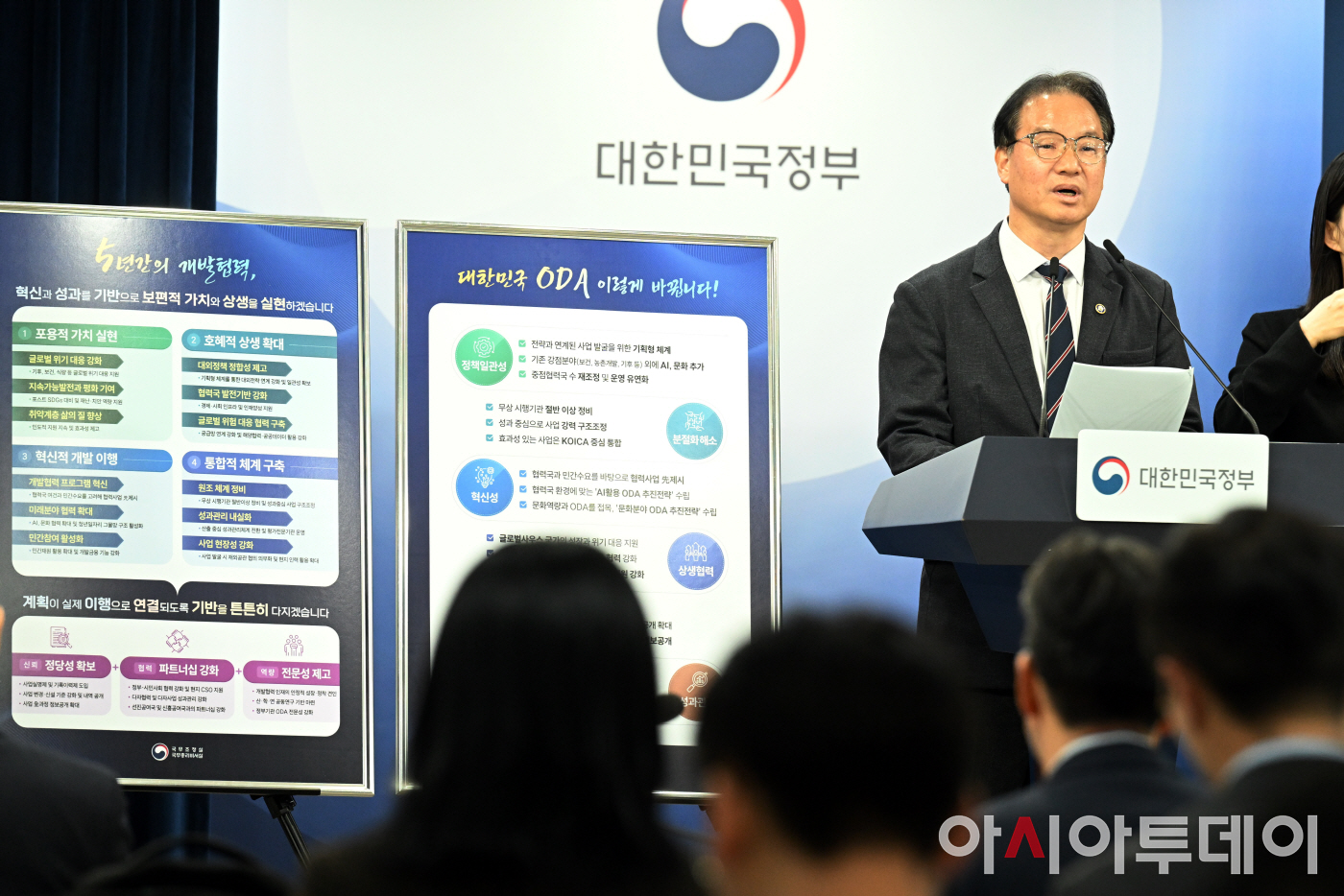 아시아투데이 박성일 기자 = 국제개발협력위원회 실무위원장을 맡고 있는 김영수 국무조정실 국무1차장이 24일 오후 서울 종로구 정부서울청사 공용브리핑룸에서 제56차 국제개발협력위원회 안건 사전브리핑을 하고 있다.