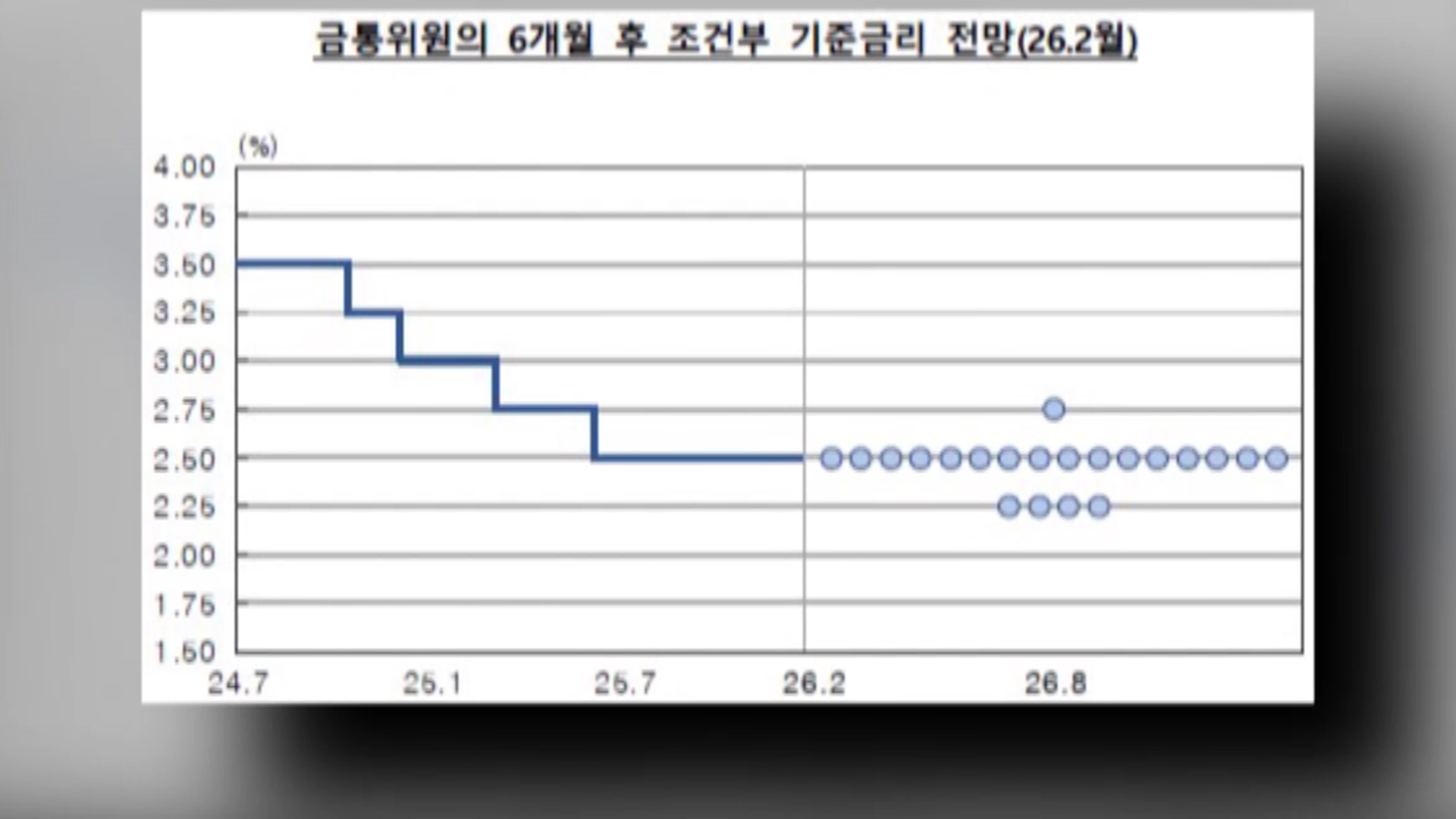한국은행 금융통화위원회가 금통위원들의 6개월 후 기준금리 전망을 반영한 이른바 'K점도표'를 오늘(26일)부터 시범 공개합니다.