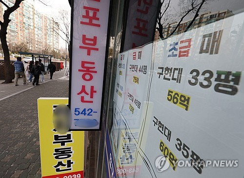 (서울=연합뉴스) 서명곤 기자 = 22일 서울 강남구 한 부동산중개업소에 급매, 초급매 등 아파트 매매 물건이 표시돼있다. 이날 한국부동산원에 따르면 2월 셋째 주(2월16일 기준) 강남구 아파트 가격은 직전 주 대비 0.01% 올라 보합에 가까운 수준을 보였다. 2026.2.22 seephoto@yna.co.kr