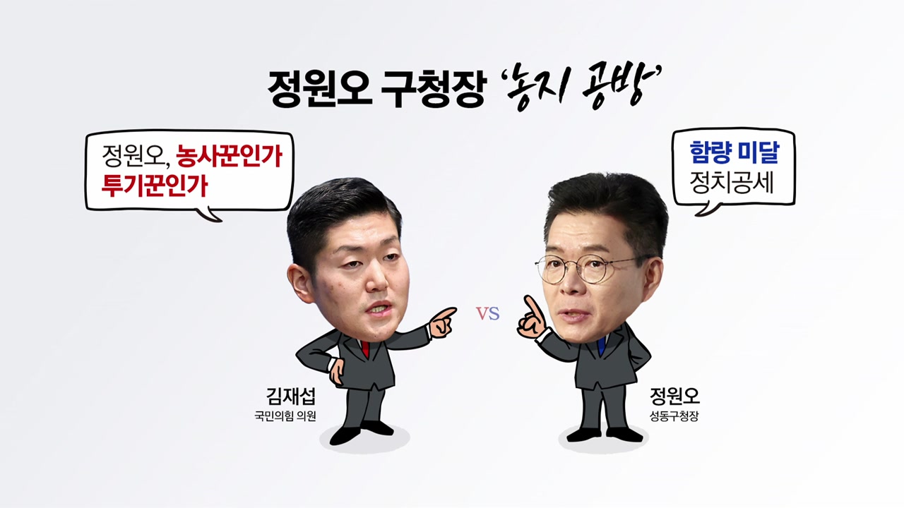 국민의힘이 정원오 구청장이 농사를 짓지도 않는 땅 600평을 0세부터 소유하고 있다며 농지법 위반 의혹을 제기하자, 정 구청장은 "농지법이 만들어지기 전 조부모가 매입한 뒤 상속받아 법적인 문제가 없다고 반박했죠.