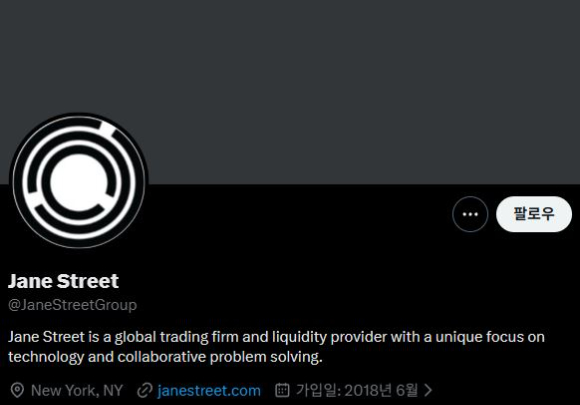 비트코인 가격 하락을 두고 시장에서는 미국의 대형 마켓메이킹 업체 제인 스트리트(Jane Street)가 조직적인 알고리즘 매도를 통해 가격을 눌러왔다는 의혹이 제기되고 있다. [사진=Jane Street X] |