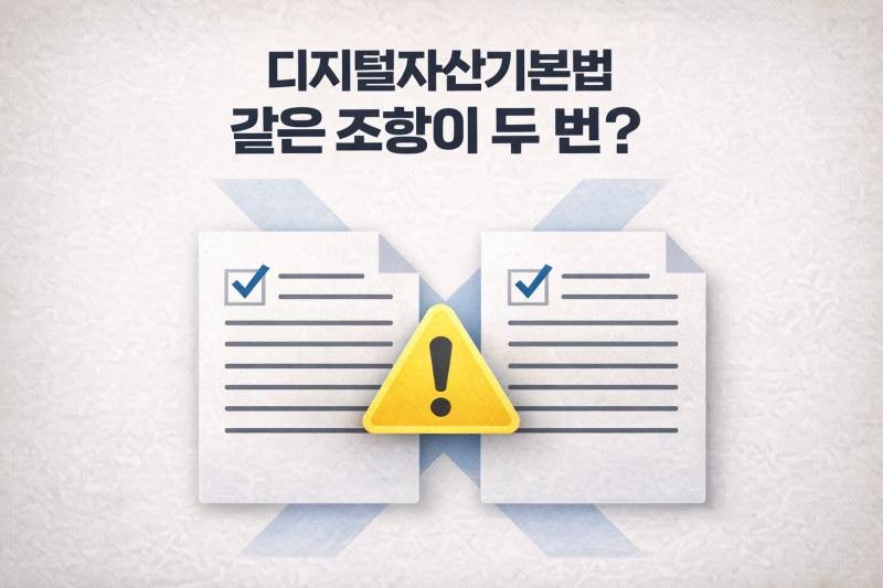 다수의 자문위원들이 문제로 거론한 부분 중 하나는 '조문 중복'이다. 동일한 취지의 규정이 서로 다른 조문 번호로 반복 삽입돼 있거나 사실상 같은 문언이 두 개의 조항에 나뉘어 배치된 것이다. 예컨대 회계처리 의무 규정은 제35조와 제75조에 동일한 내용으로 중복 기재돼 있고, 디지털자산 매매·교환 대행업자의 고지의무 및 영업행위 규칙 역시 제93·94조와 제96·97조에서 문언만 일부 조정된 채 반복된다.