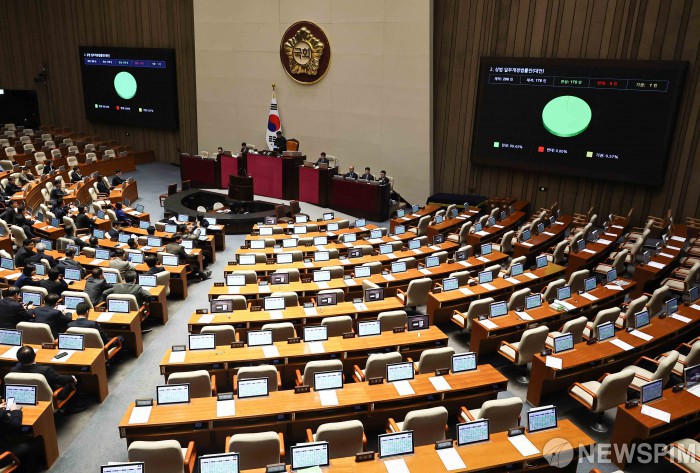 지난 25일 서울 여의도 국회에서 열린 본회의에서 상법 일부개정법률안(대안)이 가결되고 있다. [사진=뉴스핌 DB] |