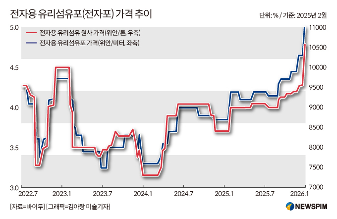 이번에 계획된 월간 조정 폭은 10~15%로, 이 같은 흐름이 이어질 경우 2026년 말 유리섬유 가격은 현재 수준의 배에 이를 가능성이 있다는 진단이 나온다.