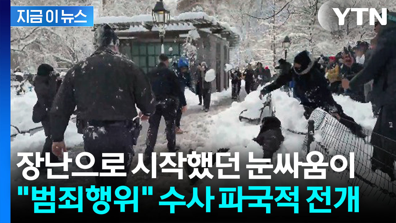 미 동부 시간 23일 오후 4시쯤 맨해튼 워싱턴 공원에서 소란을 피우는 사람들이 있다는 신고가 들어와 출동한 경찰관들이 눈덩이에 맞으면서 현장은 혼란스러워졌습니다.
