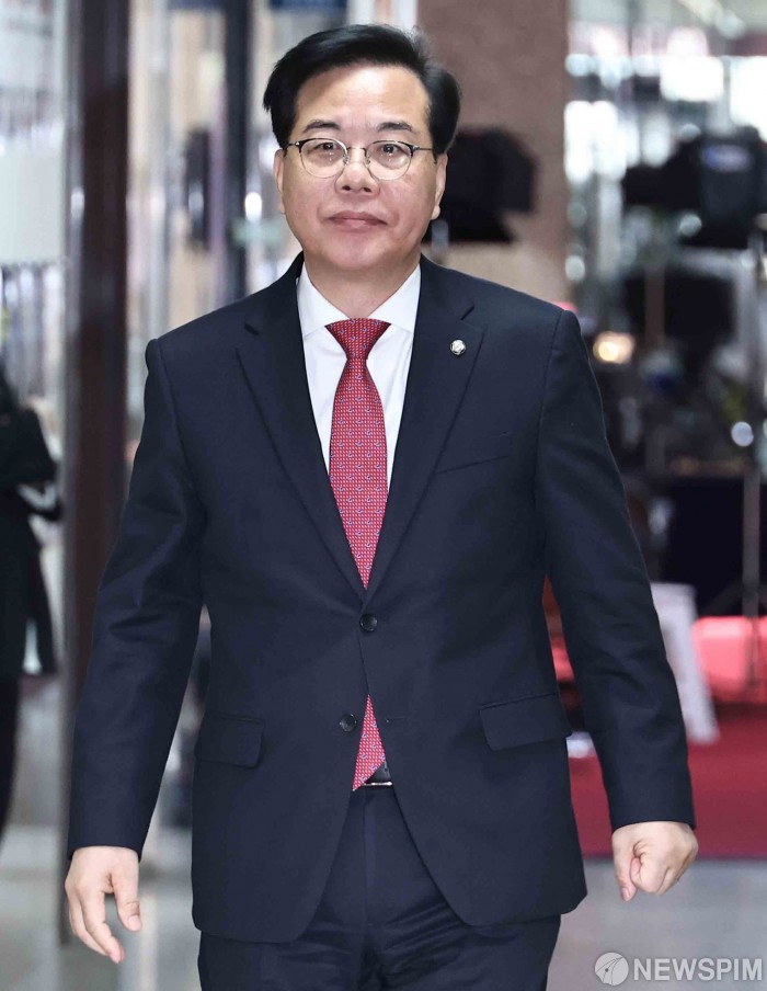 [서울=뉴스핌] 윤창빈 기자 = 송언석 국민의힘 원내대표가 27일 오전 서울 여의도 국회에서 열린 현안 관련 기자간담회에 참석하고 있다. 2026.02.27 pangbin@newspim.com
