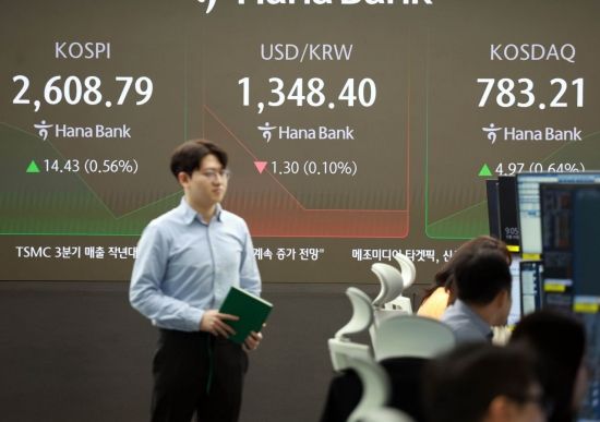 서울 을지로 하나은행 딜링룸에서 직원들이 업무를 보고 있는 가운데 전광판에 주가와 환율 등 지수들이 표시되고 있다. 사진=허영한 기자 younghan@ |
