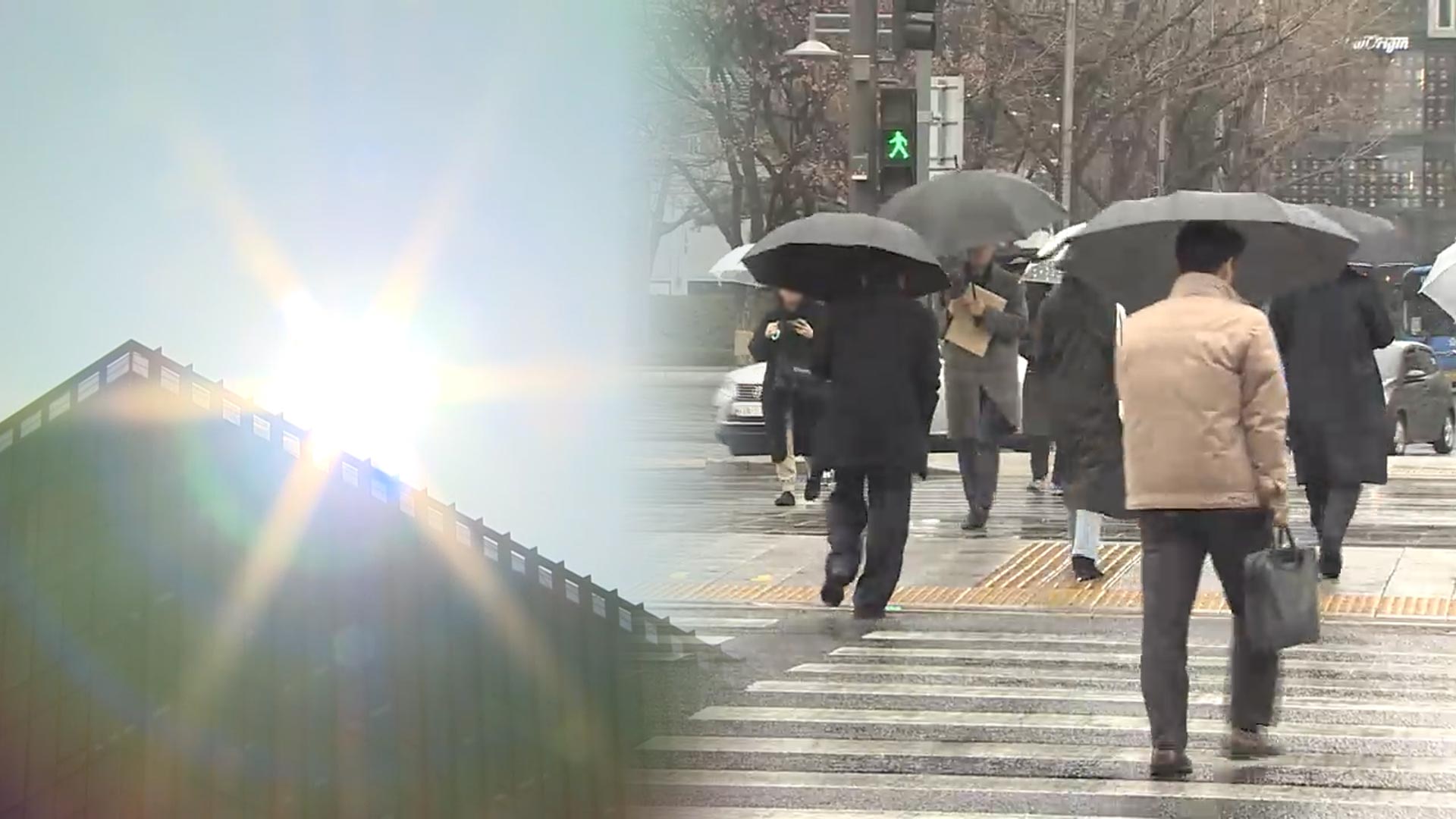 연휴 마지막 날인 월요일에는 비구름대가 한반도 남쪽을 지나면서 전국 곳곳에 눈비가 내립니다.