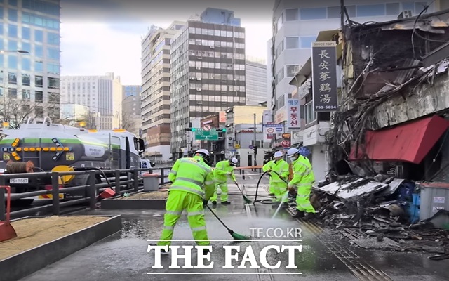이날 오전 중구청 관계자들이 거리 출입을 통제하고 그을음을 씻어내는 물청소를 진행하는 과정에서 인근 상인들과 마찰을 빚기도 했다.