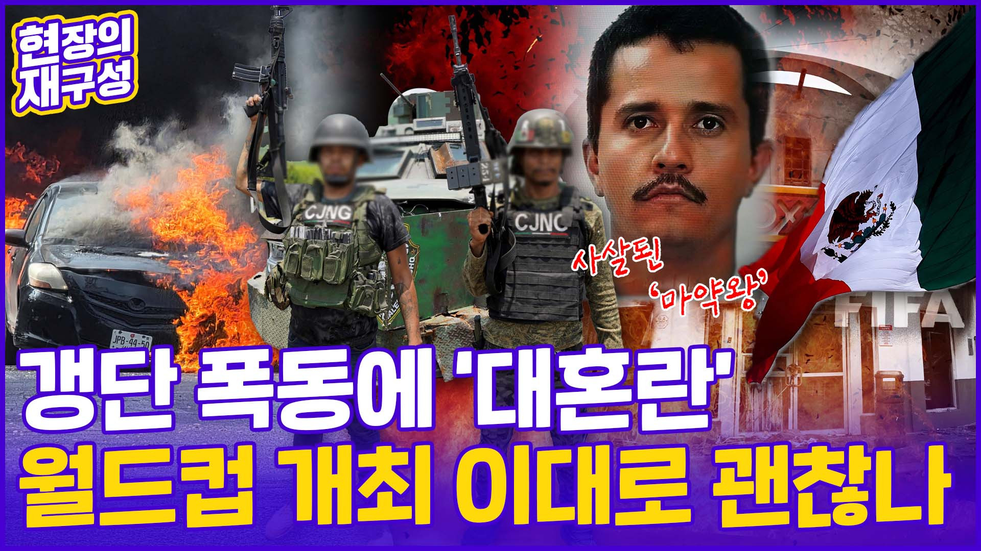 #멕시코 #마약왕 #엘멘초 #두목 #사살 #갱단 #CJNG #마약조직 #테러 #폭동 #무력시위 #총격 #전쟁터 #도로봉쇄 #방화 #치안 #비상 #월드컵 #FIFA #홍명보호 #셰인바움 #트럼프 #현장의재구성 #연합뉴스TV #Mexico #Cartel #WorldCup